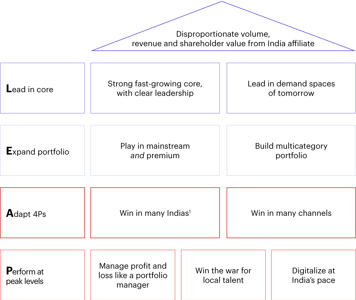 - India remains a complex market. To win in India, MNCs must LEAP: Lead in a core category; Expand their portfolios; Adapt the 4Ps; and Perform at peak levels.