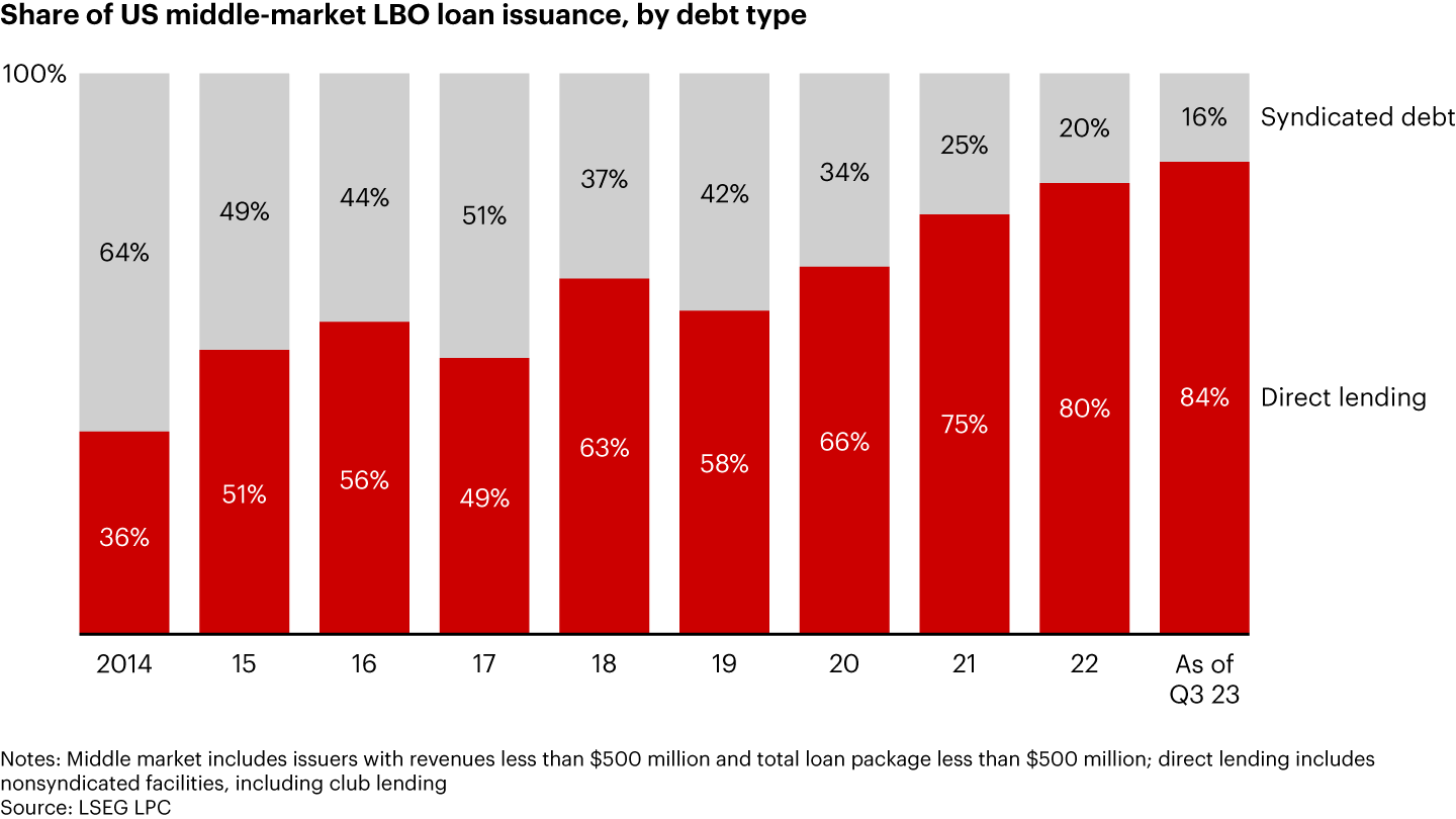 Exits are another matter. Barring a sharper-than-anticipated drop in rates, sellers will continue to face high hurdles to unloading companies to strategic buyers, other sponsors, or the public markets. With sponsors struggling to send cash back to their LPs, 2024 will likely be defined by how creative the industry can be in finding ways to generate liquidity.