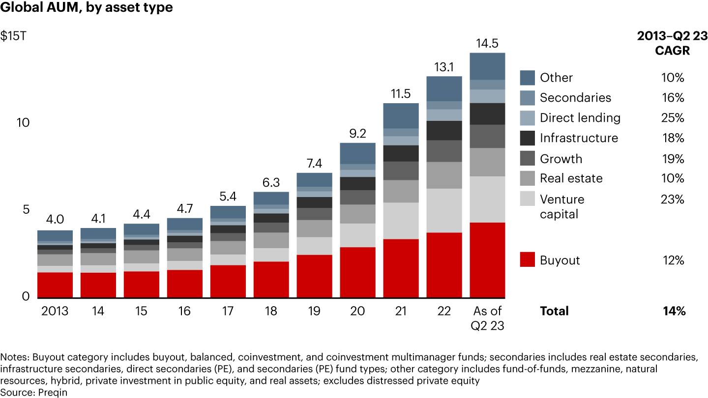 The second thing you need to believe is that there are enough innovative solutions like continuation funds, securitizations, and NAV financing to help GPs recap prized assets and wait for returns to ripen while keeping economic interest aligned between GPs and LPs. The secondaries space is still small and somewhat controversial. But it is growing rapidly and represents the kind of financial innovation that is private equity’s specialty. We discuss this growing asset class in much more detail here.