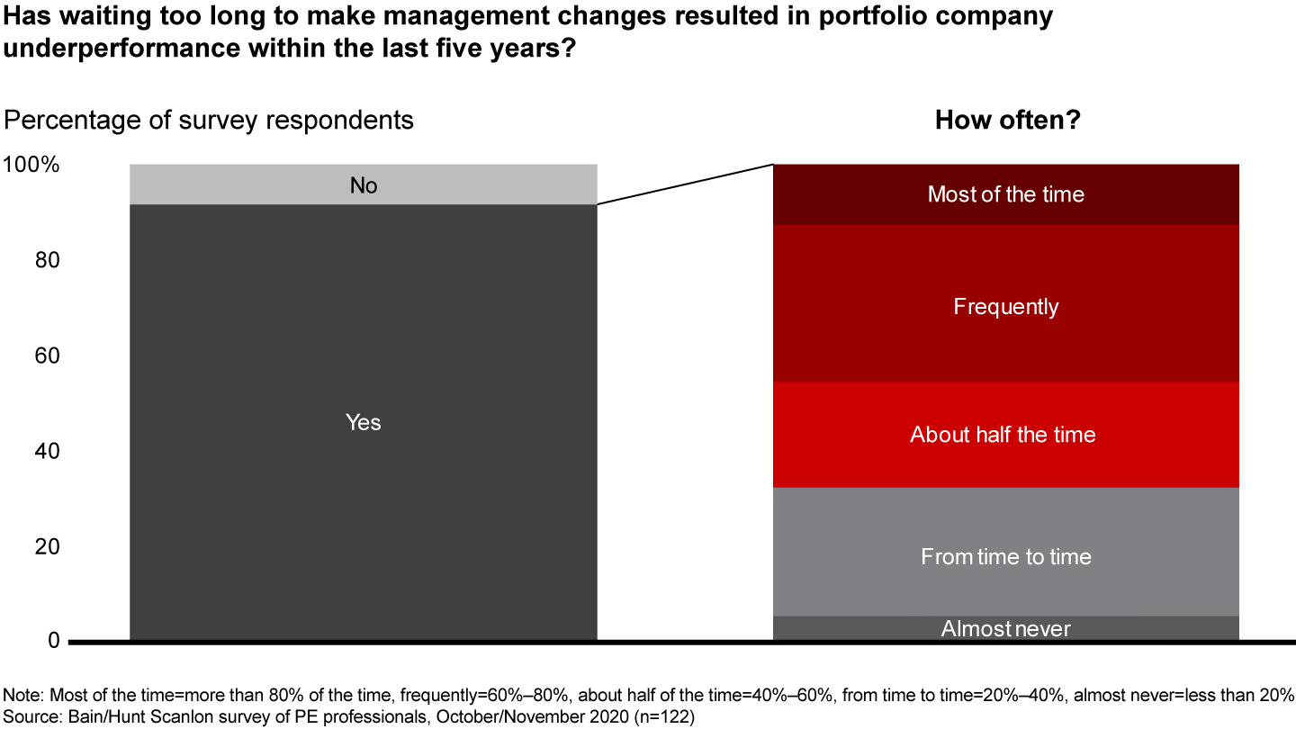 PE professionals overwhelmingly agree that waiting too long to make management changes results in company underperformance