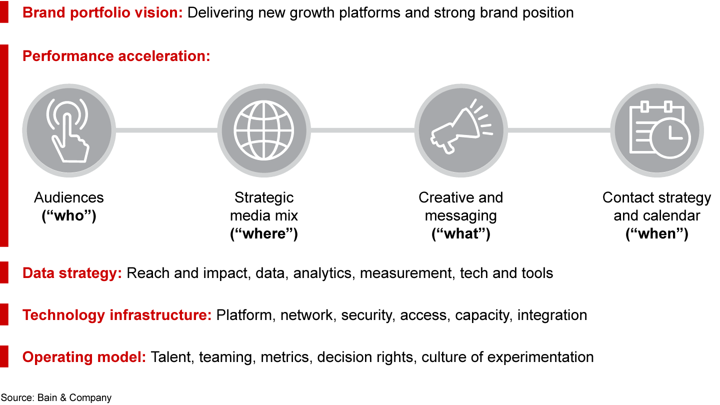 - How do I deliver best-in-class performance marketing? The consumer journey has fundamentally changed, and so has the role of the brand manager. Once guardians of the brief to agencies, today they must lead hands-on content generation, data management, and real-time test-and-learn efforts to redefine the “who, where, what, when” of marketing at a much greater speed. The change management challenge is profound, requiring a strategic reallocation of spending and a reorganization of the operating model, while at the same time driving immediate results with improved in-market execution. One global consumer products company used this approach to increase online sales 15% above plan in-year in a major market, while designing the operating model and transition plan to expand its shopper-led digital marketing capabilities globally. Another leading global brand built the overall test-for-results capability to implement match-market A/B/C testing of media mix, visuals, activation, and timing across online and offline sales, resulting in 15% ROI acceleration across the business in-year.