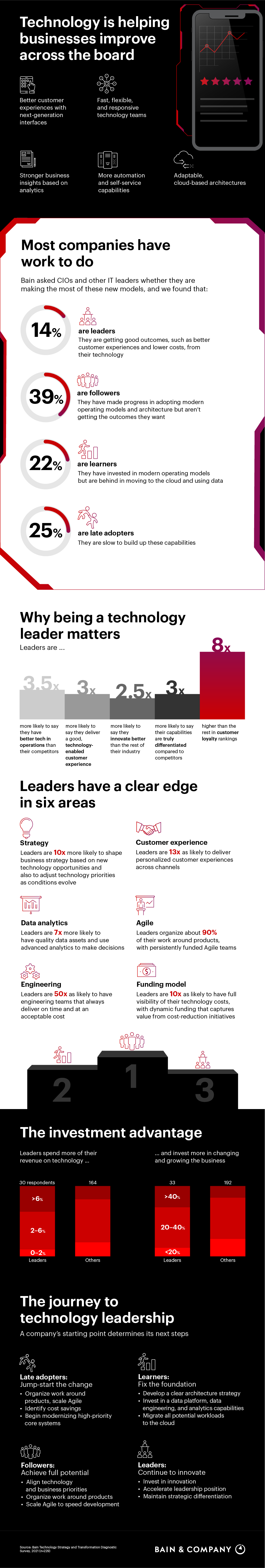 Infographic Why Investing in Technology Is No Longer a Choice In a rapidly changing business climate, our survey finds that only 14% of businesses are making the most of technology to stay ahead of the game. Here’s how the rest can catch up. By Vishy Padmanabhan and Lauren Brom Infographic Why Investing in Technology Is No Longer a Choice en Authors Vishy Padmanabhan Former Partner, New York Lauren Brom Practice Director, Dallas Contact us Published in August 2021 Tags CIO Insights Digital Enterprise Technology Technology Strategy and Transformation