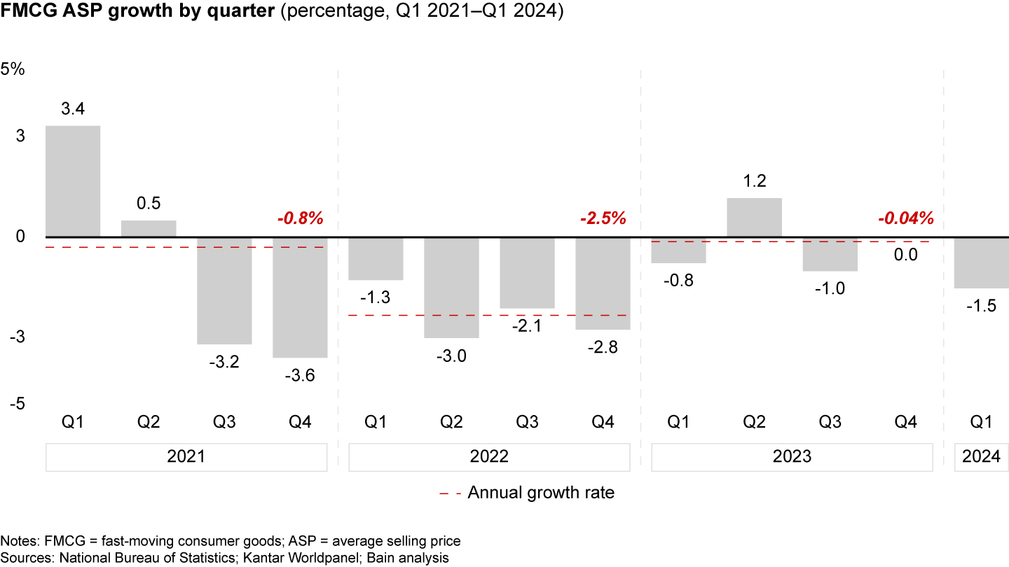 FMCG ASP deflationary trend reemerged in Q1 2024, a downturn from 2023’s stable pricing trend