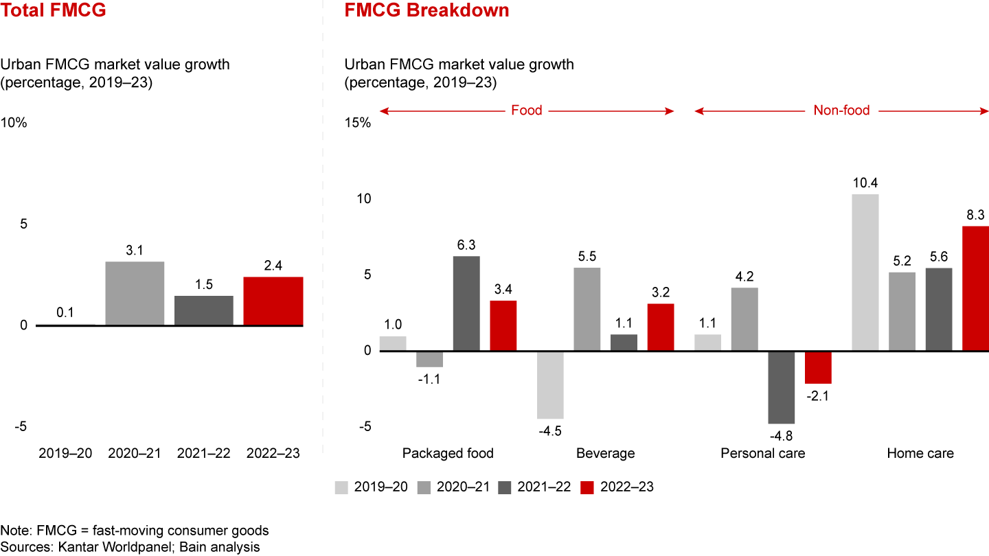 Category update: Home care led FMCG growth, followed by packaged food and beverage