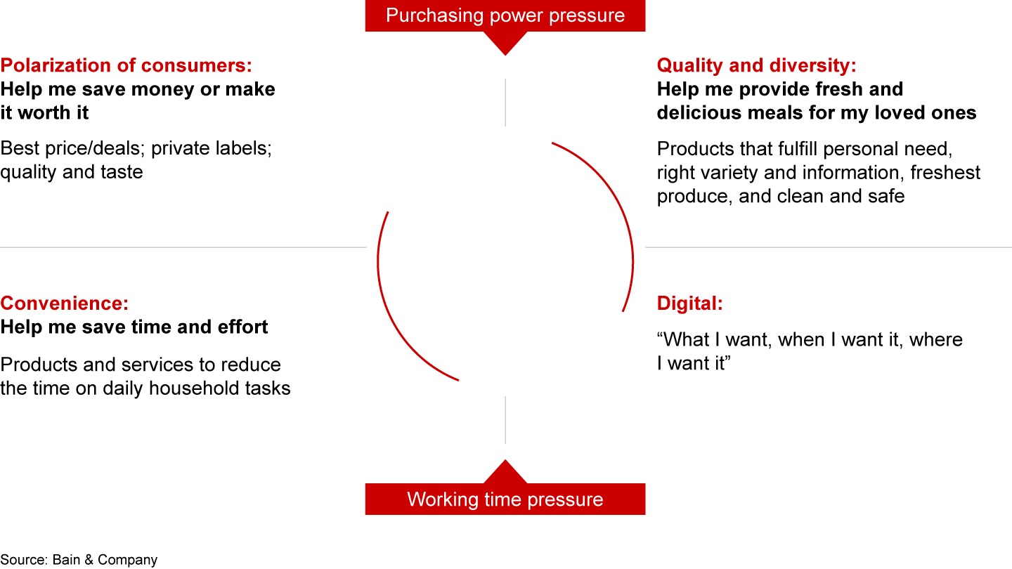 Consumer needs are becoming more fragmented and are delivering a polarized response. Smaller brands as well as insurgents can satisfy those premium niches of changing tastes where companies are struggling to connect with these trends. At the same time, the constrained are drawn to value and private label.