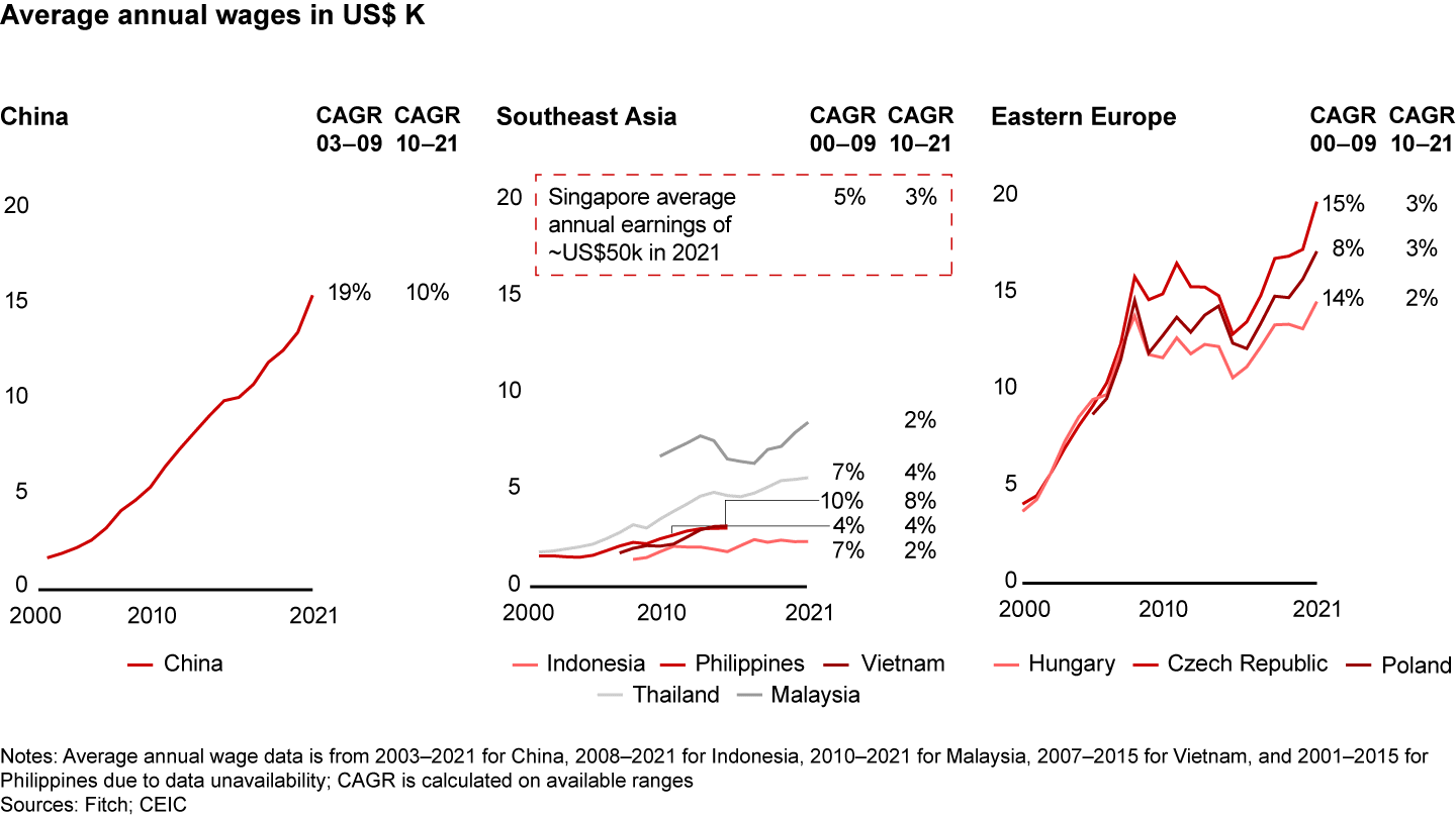 Southeast Asian wage growth has been relatively low compared with China and Eastern Europe