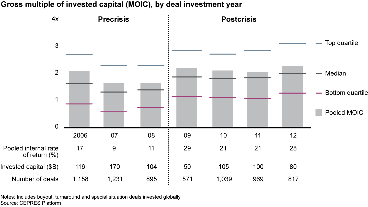 Investments made precrisis often have lower returns, but deals made during or after a downturn tend to do very well