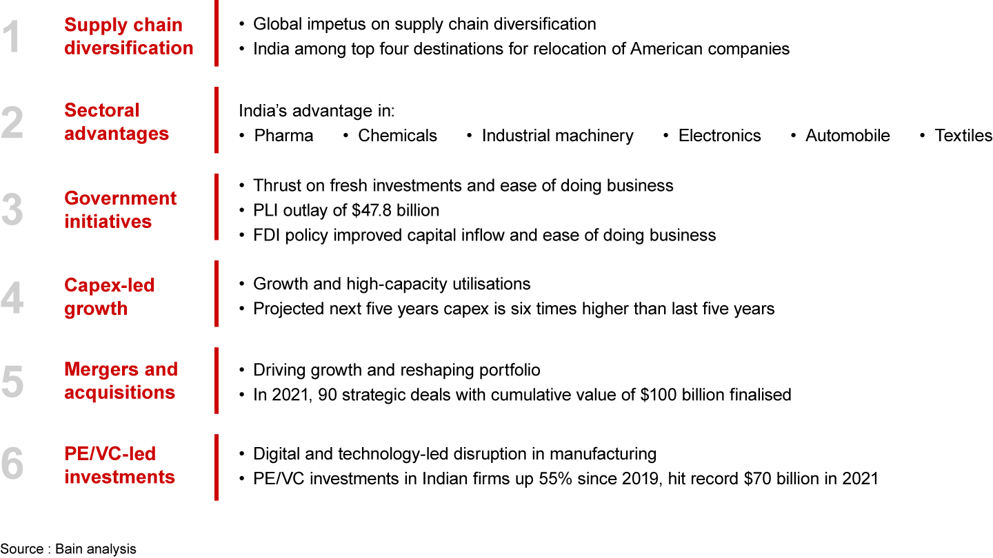 India’s growth in manufacturing exports has been propelled by six transformative megatrends that have been fast-tracked during the past two years (see Figure 2):