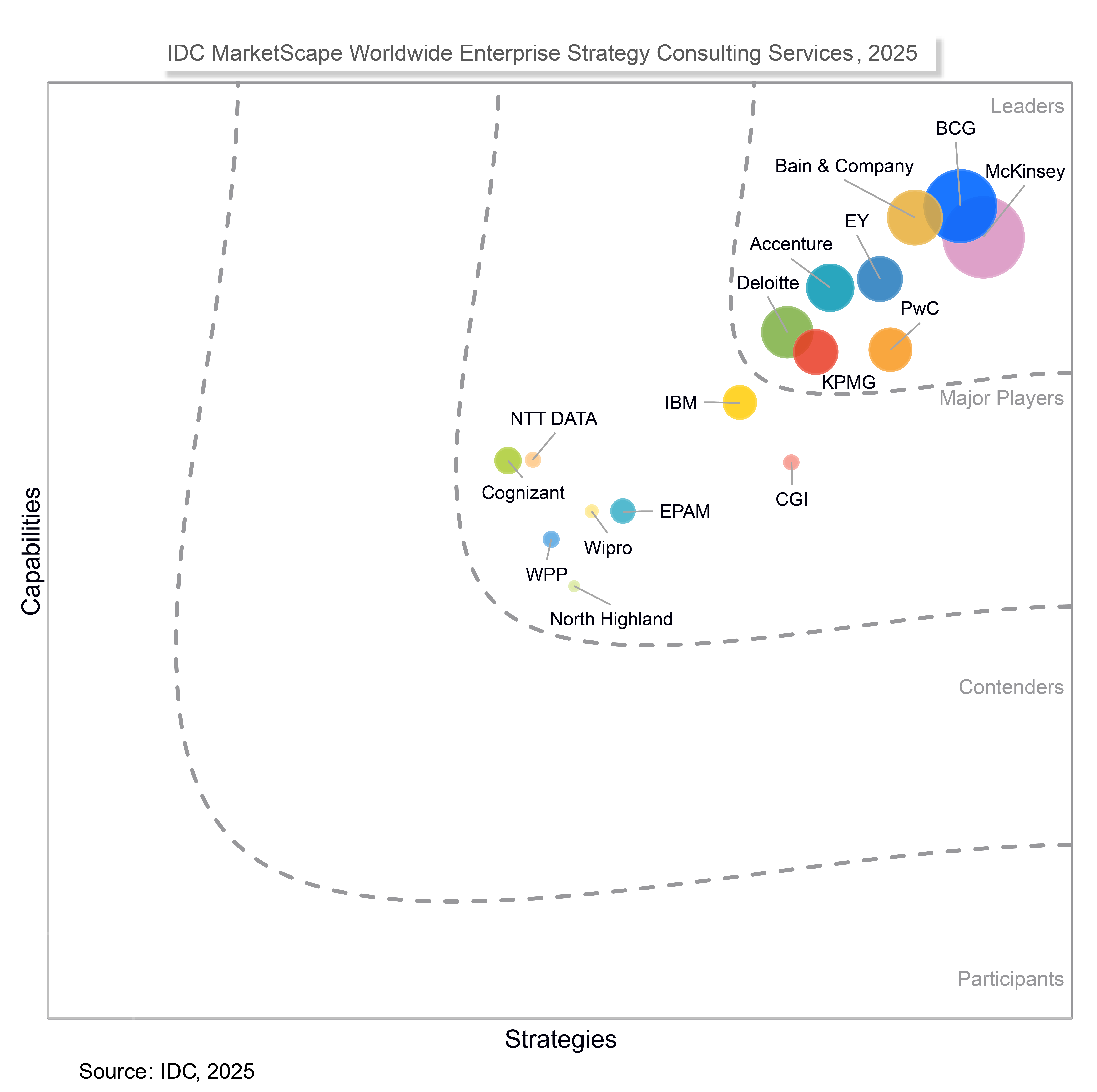 SOURCE: “IDC MarketScape: Worldwide Enterprise Strategy Consulting Services 2025 Vendor Assessment” by Bill Latshaw, September 2025, IDC # US52035225.