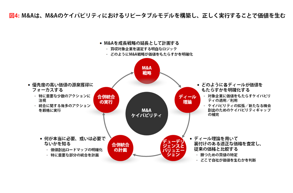 成長に対するプレッシャーは、時と共に増す。今世紀初めの10年間を振り返ると、多くの企業が、M&Aを競争優位性の高い武器として用い、株主への大きな還元という成功を収めてきたことは明白である。経営幹部には、高い知識とコミットメントが必要とされた。しかし、同時に、リピータブルモデルを有する企業は、大きな報酬を手にしていた。今後数年間で益々醸成されていくのは、よく練られたディールこそが成功する環境であろう。当シリーズの第2部では、市場環境、企業のバランスシートに加え、競争領域を拡大させるような新たなるケイパビリティの獲得という新たなニーズが、どのようにM&Aのサイクルに影響を及ぼすか考察する。この環境下では、大多数の企業にとって、買収を通じた成長が戦略的要請を解く鍵となる可能性が高い。そして第3部では、個々の企業が、このような環境の中でどのようにリピータブルモデルを構築し、投資を行えば勝つ確率が向上するか詳細に調査する。全ての企業がそれを行うことが出来るわけではないが、実行出来る企業には大きな報酬が待っているだろう。