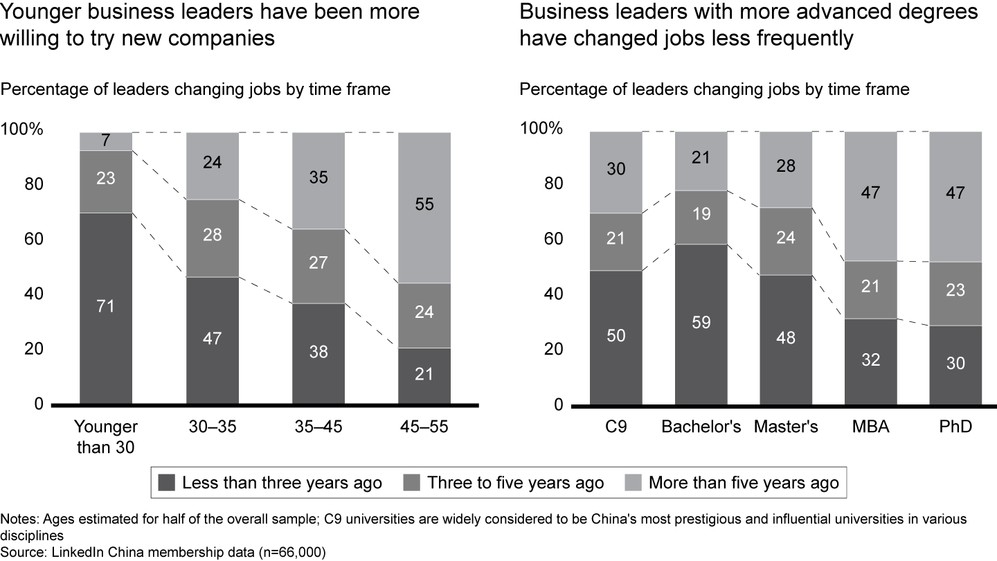 Three factors appear to correlate with Chinese leaders’ likelihood to switch companies.