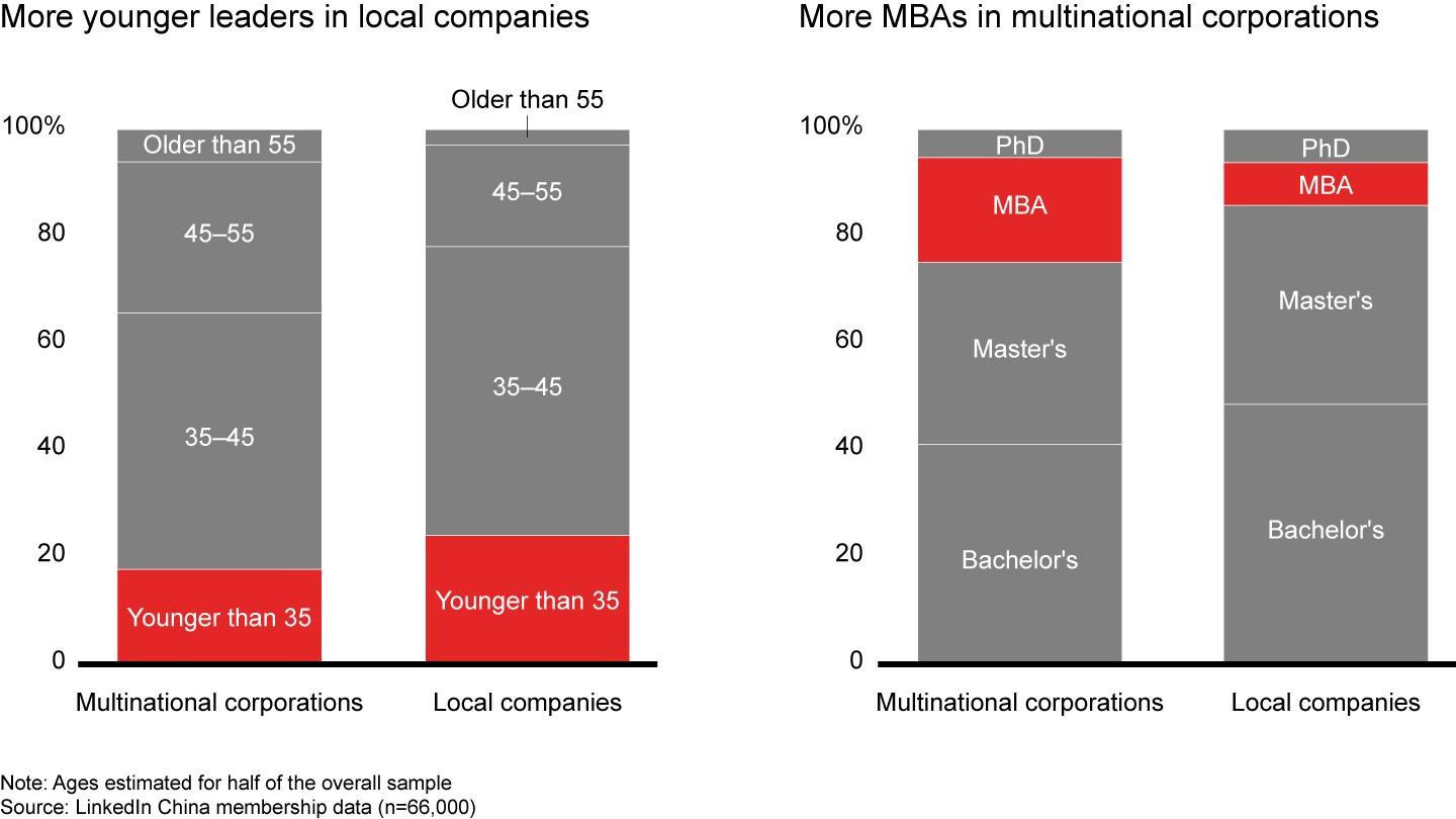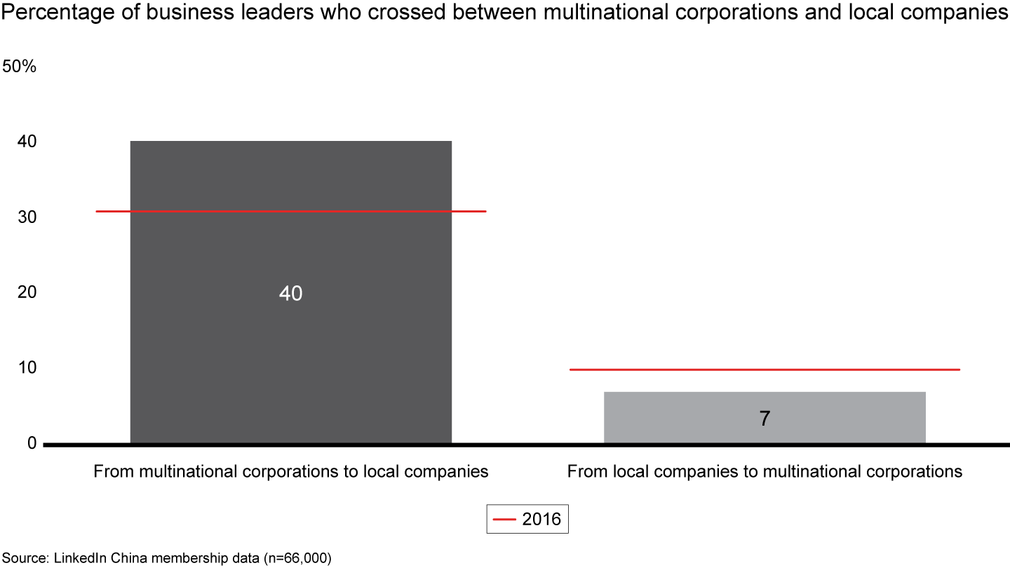 In response, recruitment efforts are intensifying. Leaders with global work and education experiences are leaving multinational corporations for local companies at an increasing rate (see Figure 5).