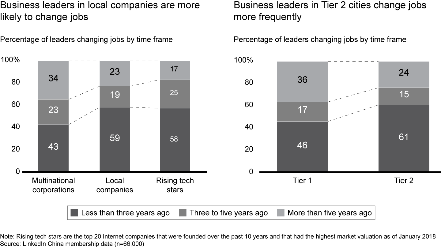 Leaders in local companies and Tier 2 cities have been more likely to change jobs over the past three years
