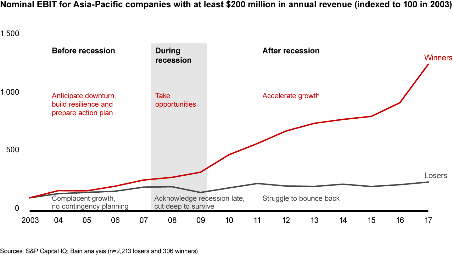 Finally, winning companies lay a strong foundation for growth by creating a lean cost base, preparing for strategic mergers and acquisitions, and bolstering their talent base.