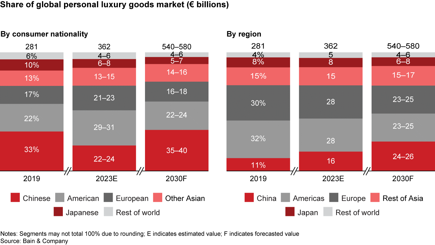 - Chinese consumers should regain their pre–Covid-19 status as the dominant nationality for luxury goods, growing to represent 35% to 40% of global purchases.