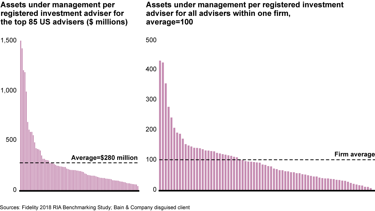 Adviser productivity varies widely across and within wealth management firms