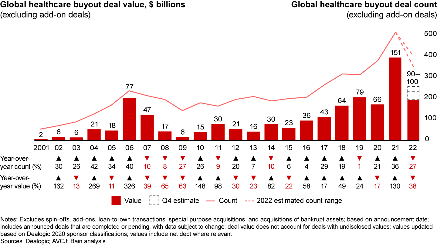 This article is part of Bain's 2023 Global Healthcare Private Equity and M&A Report.