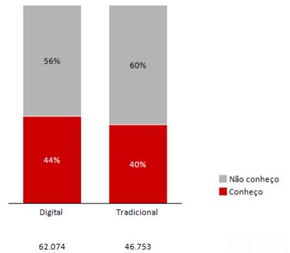 A pesquisa revela que, apesar do crescimento dos bancos digitais e de suas ofertas de marketplace, somente 44% dos clientes dessas instituições conhecem essas lojinhas dos bancos. Entre as instituições tradicionais, somente 40% dos clientes têm conhecimento do ecossistema de compras disponibilizado por seu banco.