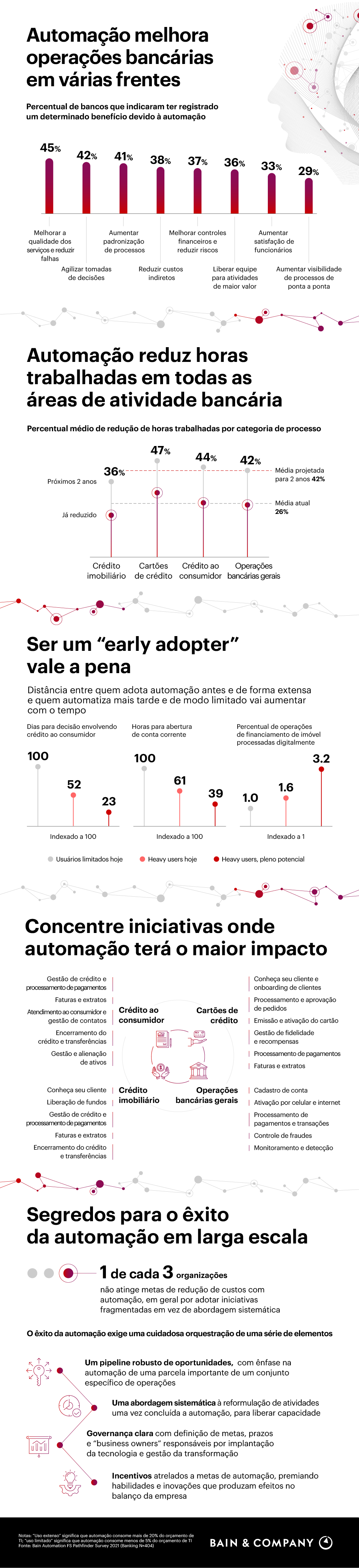 Infographic A vantagem da automação no setor bancário A automação melhora custos, acelera processos e deixa clientes mais satisfeitos. By Purna Doddapaneni, Roberta Berlinghieri, Jed Fallis, and Michael Heric Infographic A vantagem da automação no setor bancário pt-BR Authors Purna Doddapaneni Partner, Dallas Roberta Berlinghieri Alumni, Milan Jed Fallis Partner, Toronto Michael Heric Partner, New York First published in maio 2022 Tags Automation Banking Business Process Redesign Customer Experience Digital Financial Services Service Operations Support Functions