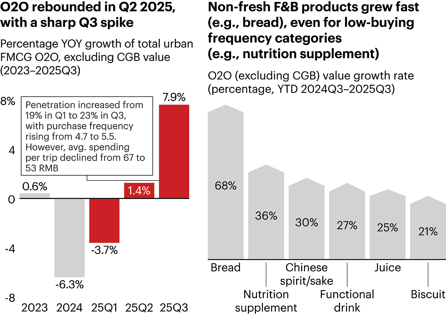 O2O rebounded in Q2 2025 after decline in 2024 and surged in Q3, with strong growth in non-fresh F&B