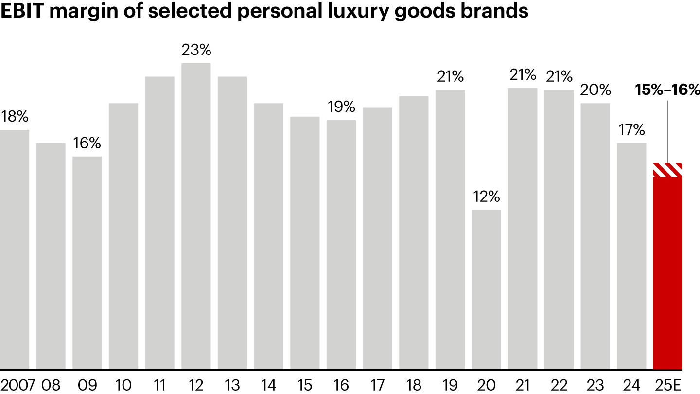 Notes: EBIT is earnings before interest and taxes; E indicates estimated value; includes a representative set of luxury brands across product categories and regions