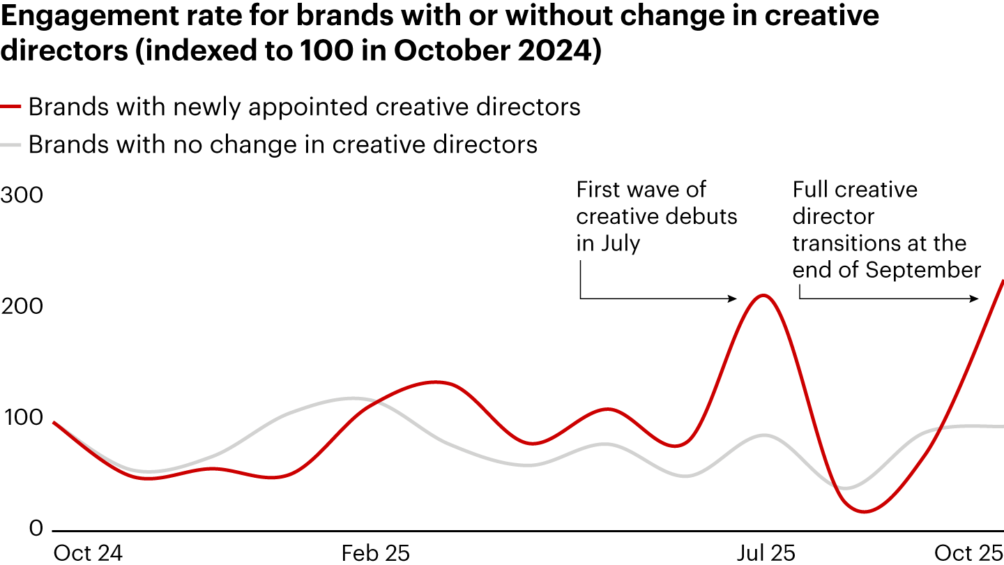 - The ongoing contraction of the client base is driven primarily by aspirational consumers, who have been pressured by steep price increases since 2019. Customer satisfaction levels are alarmingly low, highlighting a lack of clear differentiation in brands’ value proposition: 70% of consumers are dissatisfied with today’s in-store experience, and 90% feel the customer experience is similar across brands. Encouragingly, brands that changed their creative director this year saw improved consumer engagement, confirming that change and newness retain a powerful appeal.