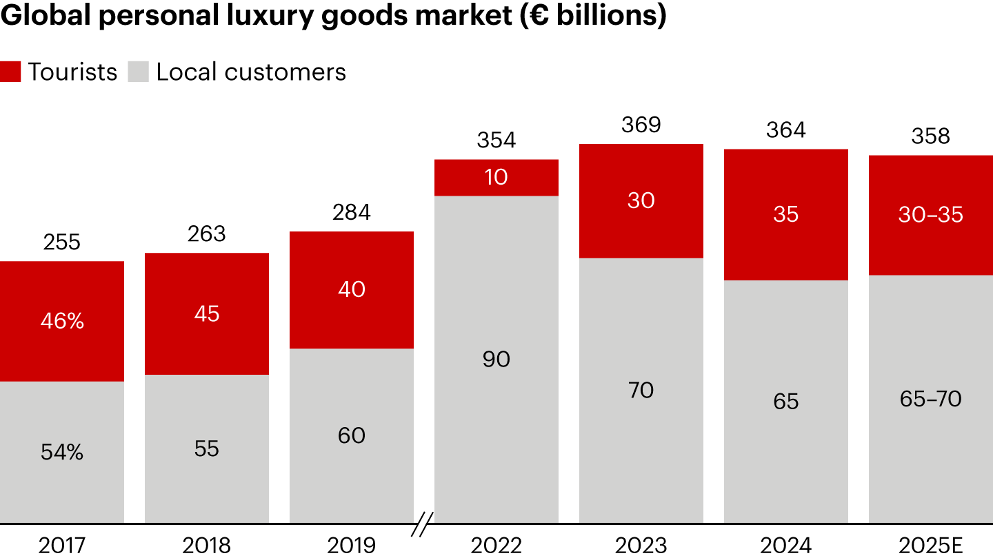 - Globally, tourist spending represented only 30% to 35% of global luxury purchases in 2025, compared with about 40% in 2019.