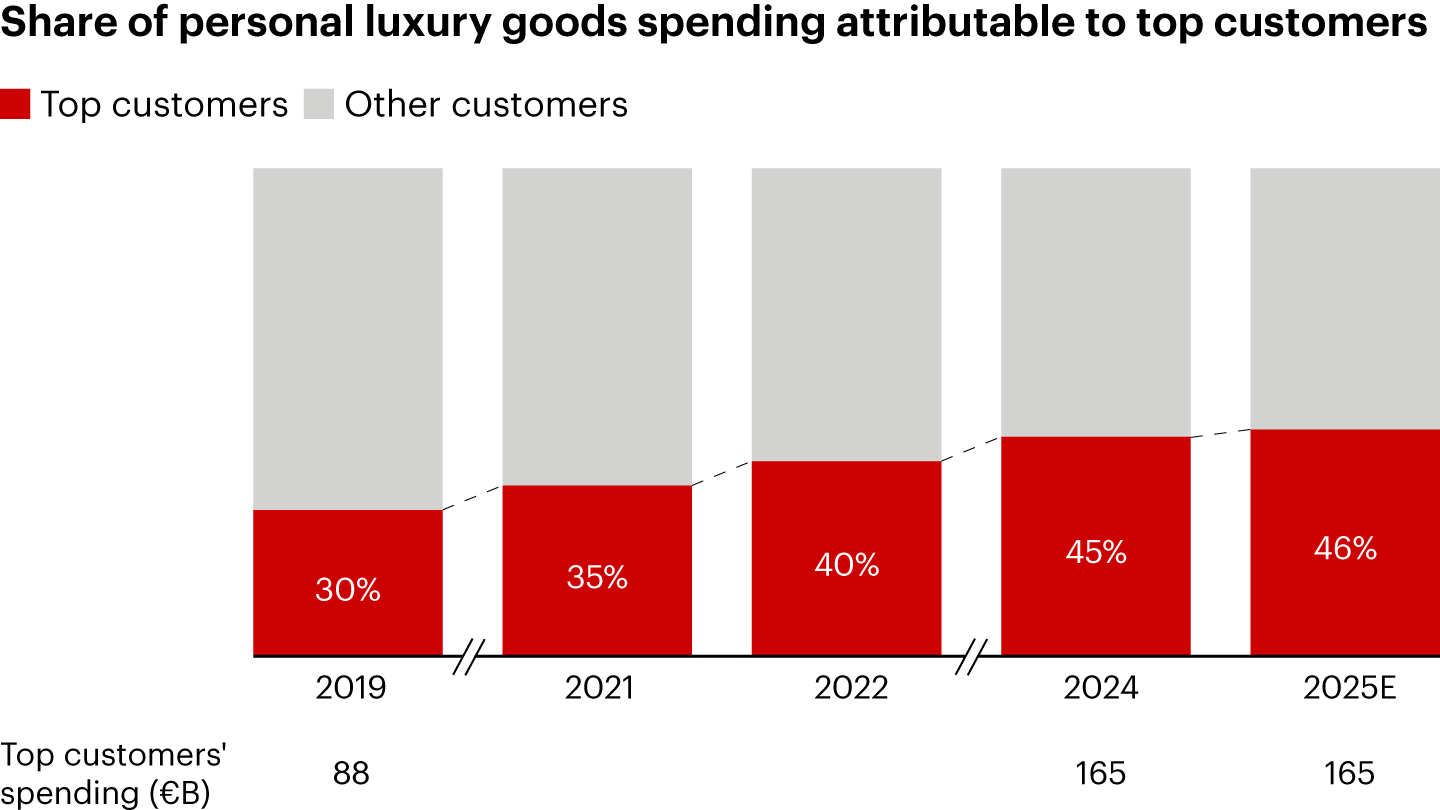 Notes: E indicates estimated value; top customers defined as those spending more than €20,000 a year in personal luxury goods