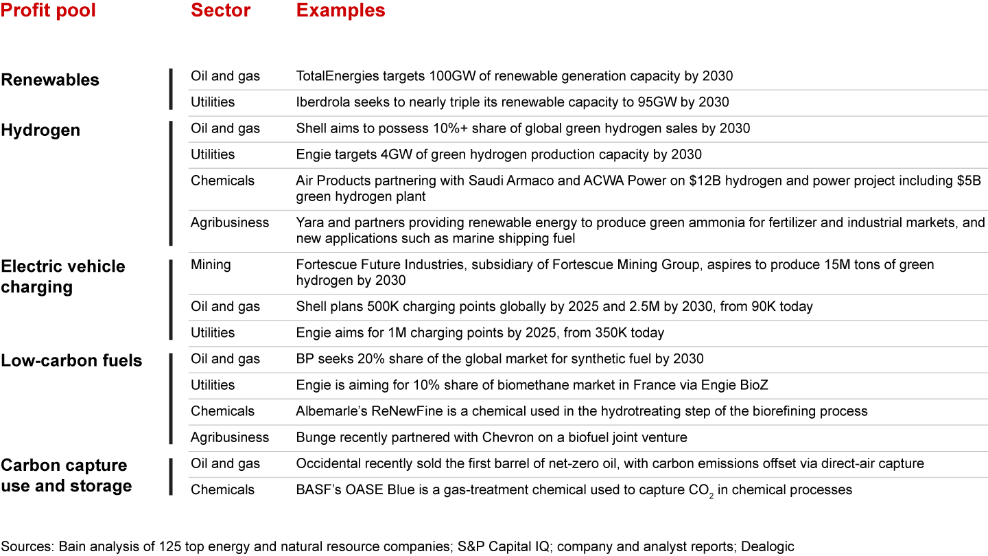 - Renewables. European oil and gas firms like BP and Total are investing in power generation, competing with incumbent utilities. Some chemicals and mining companies are collaborating with utilities to develop clean energy for their operations.