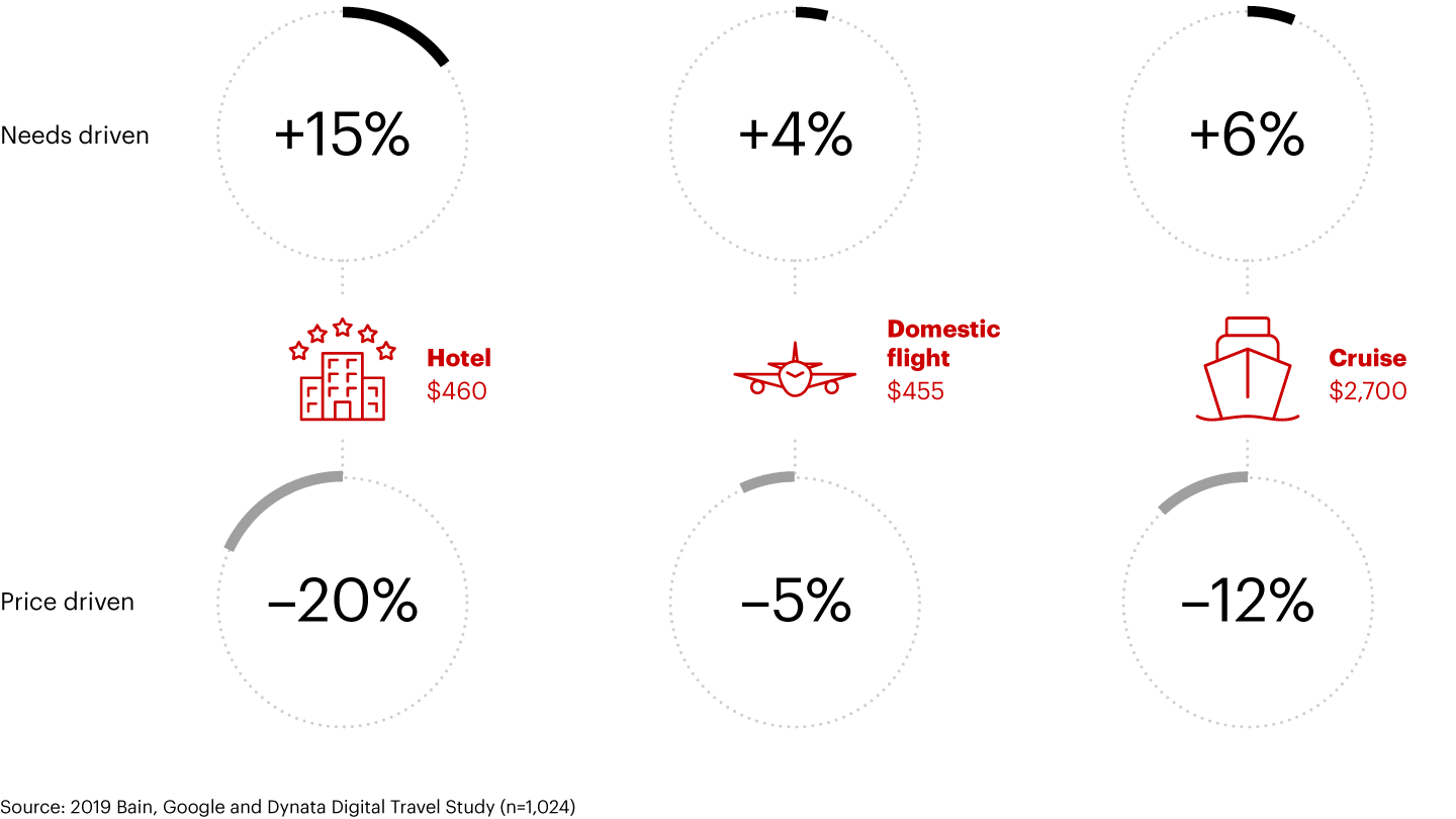 As well as transforming the customer’s experience, this approach can lift revenue. In the Bain and Google study, customers in the US who booked because a raw need was met paid 15% more than average for hotel rooms and 6% more for cruises (see Figure 2). In Germany and the UK, the premium for meeting a raw need was 10% for international flights and 8% for hotel rooms.