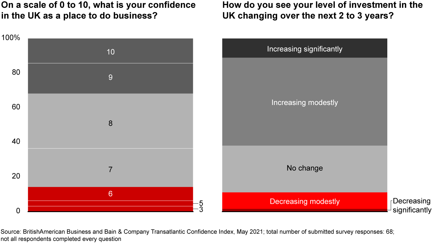 • US companies show significant confidence in the UK as a place to do business, both now and in the future.