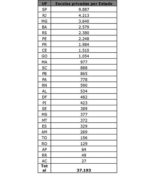 O setor de educação básica no Brasil tem se mostrado resiliente à crise econômica e despertado o interesse de grandes grupos do setor, que hoje possuem apenas 5% dos alunos matriculados em redes privadas. Segundo levantamento realizado pela consultoria Bain & Company, existem 37 mil escolas privadas no País, das quais 25 mil com finalidade lucrativa.