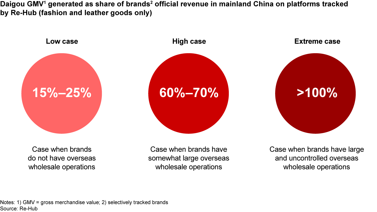For fashion and leather goods brands with limited or tightly controlled wholesale channels, sales on these platforms can account for 15%–25% of their official sales on the Chinese mainland. In contrast, for brands with larger and less regulated wholesale channels, platform sales can represent 60%–70% or even more of their total sales on the Chinese mainland (see Figure 7). Notably, discounts for the top products tracked by Re-Hub on Daigou platforms deepened by approximately eight percentage points in 2024. This trend raises concerns that the grey market will continue to undermine revenue potential and brand equity on the Chinese mainland.