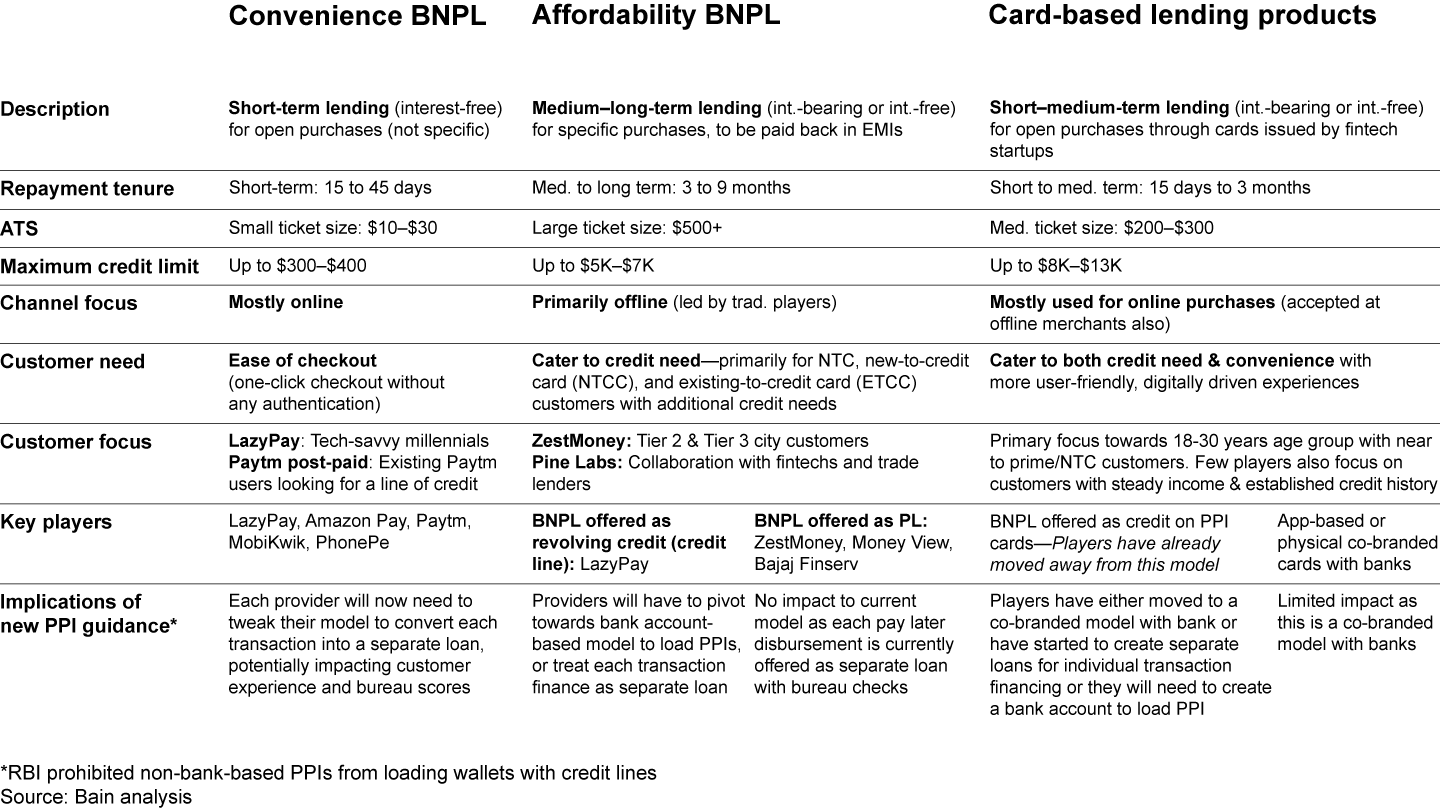 • However, recent regulations restricting Prepaid Payment Instruments (PPIs) from offering credit lines and the new digital lending guidelines will adversely impact the current business models of these players, especially card-based lending and BNPL players providing a revolving line of credit.