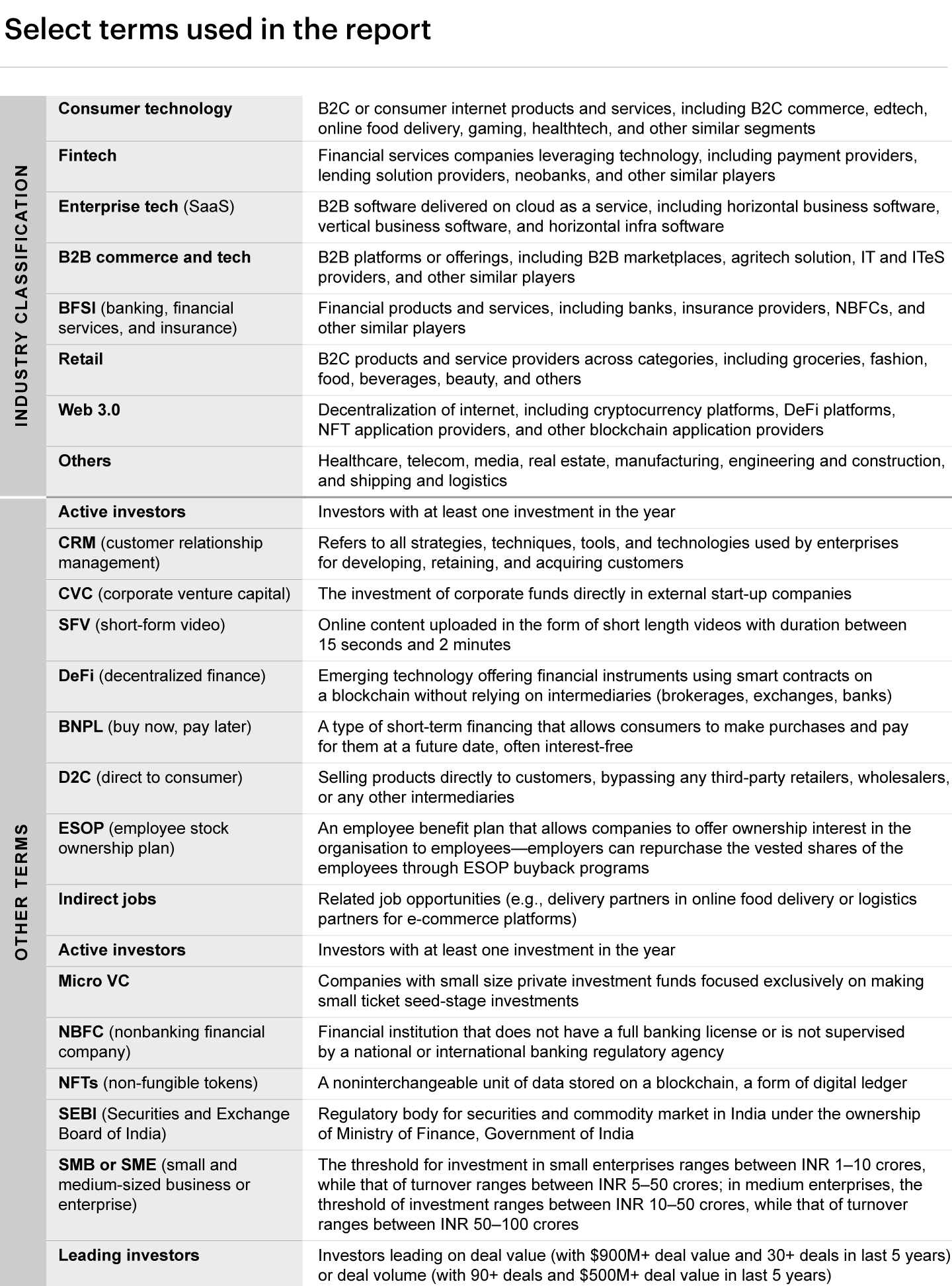- A couple of watchouts may continue to affect the ecosystem for a while: stricter IPO norms are expected from SEBI, regulatory uncertainty for a few sectors is likely to continue (e.g., online gaming and fintech), and a competitive talent market will continue to strain the ecosystem
