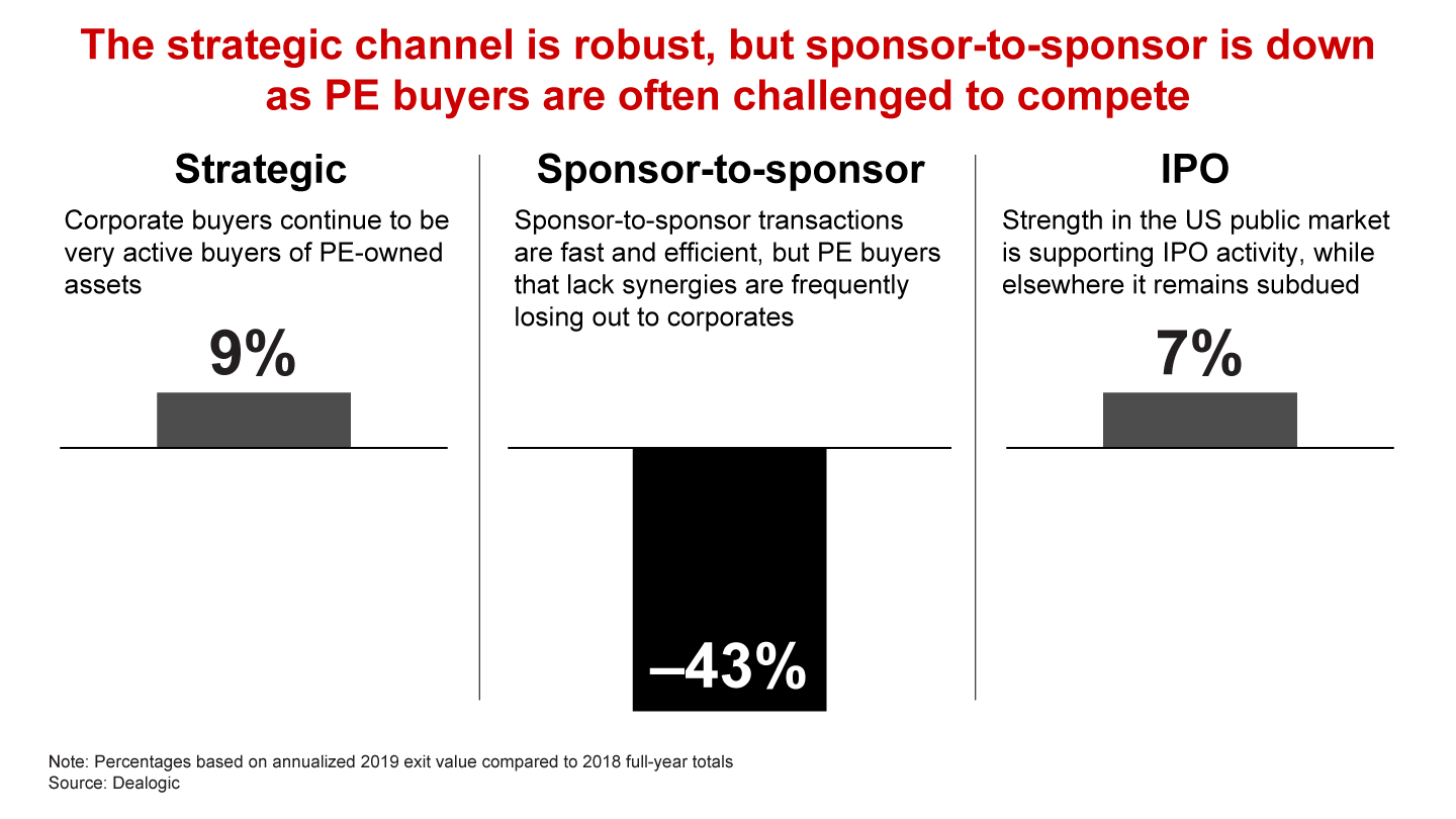 Exit activity also remains very strong, driven in part by the same corporate buyers snatching up private equity-owned assets globally, as well as by an active IPO market in the US. (Watch Bain Partner Jayne Zecha discuss the IPO market on CNBC.)